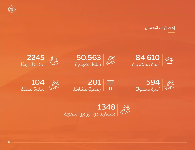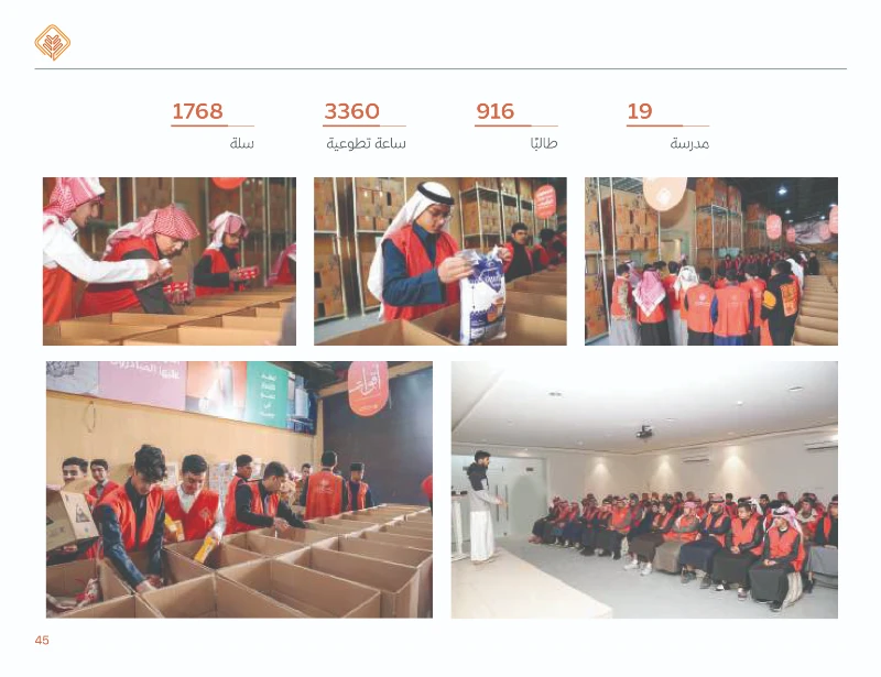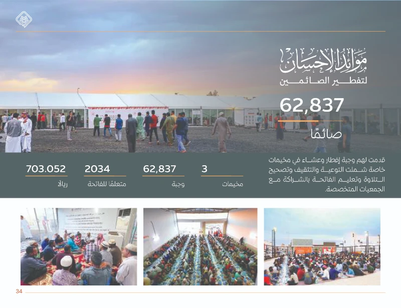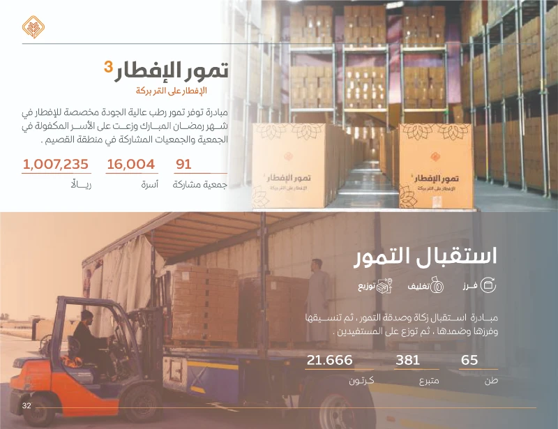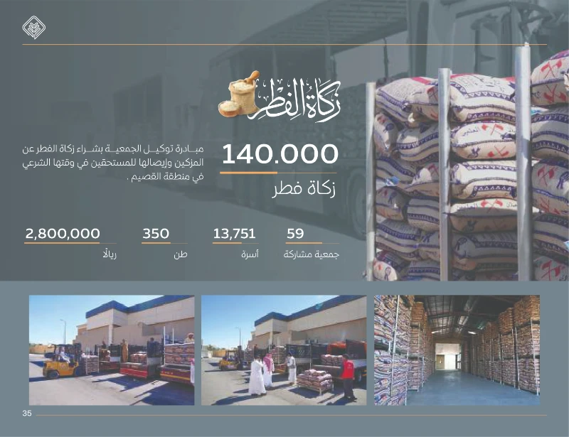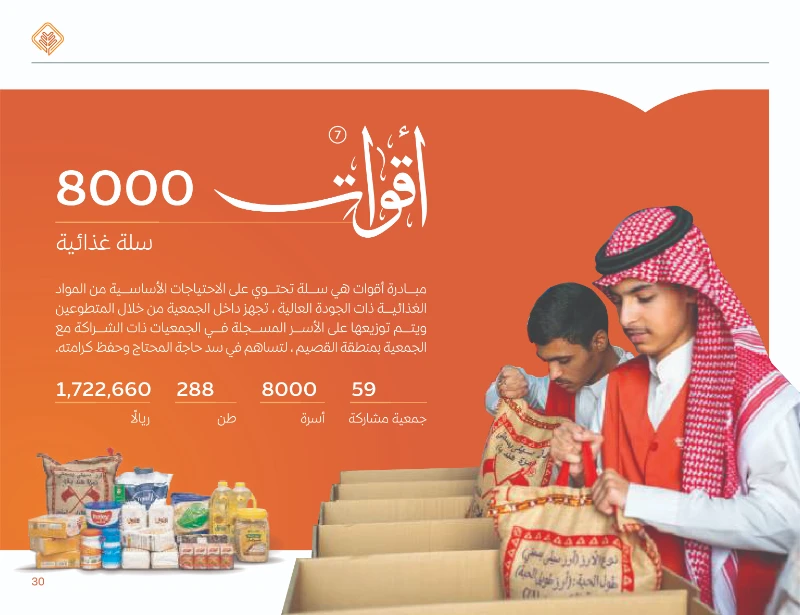 13 .أبرز المبادرات: مبادرة أقوات (سلال غذائية)، توزيع التمور واللحوم، وتوزيع زكاة الفطر التي استفاد منها 13,751 أسرة