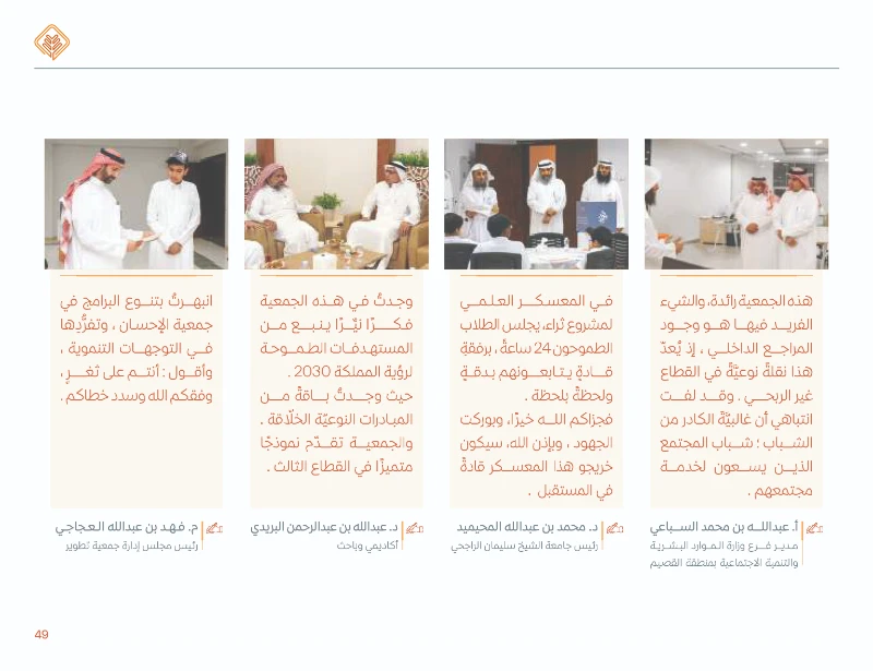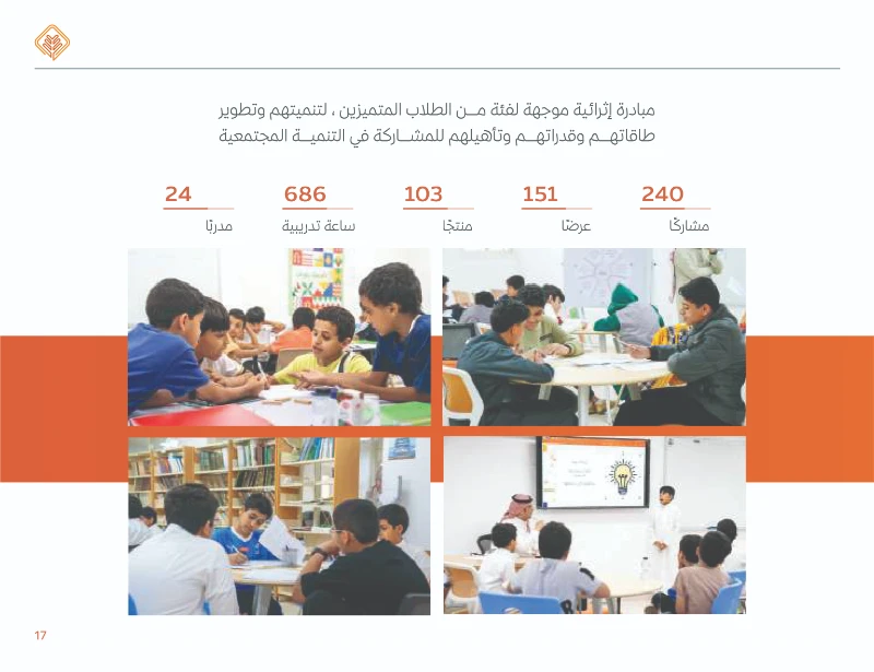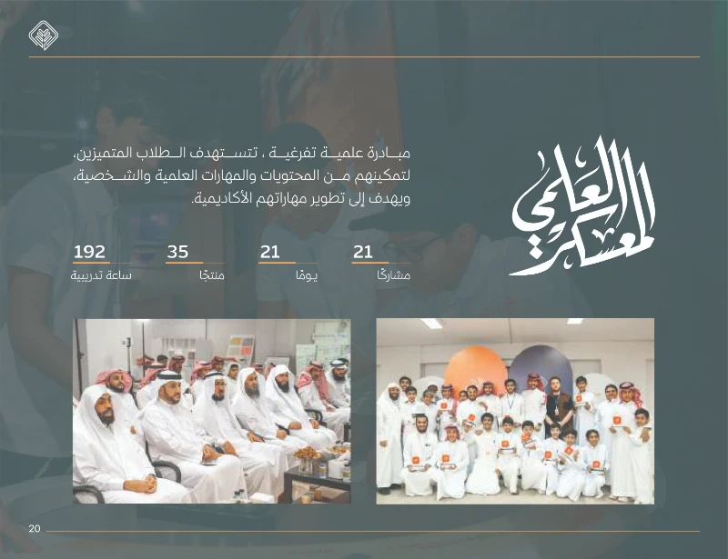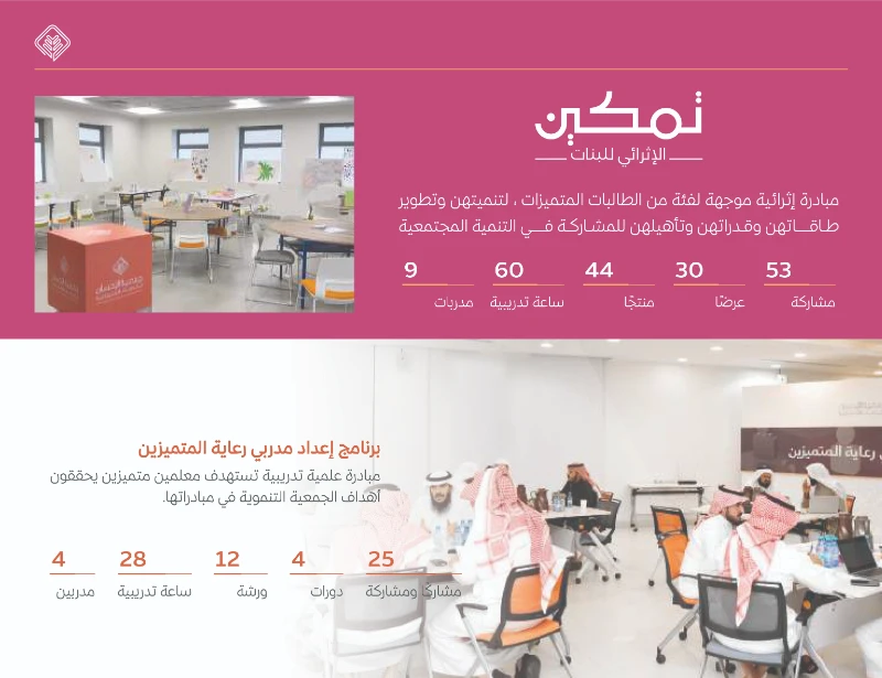 7 .شملت برامج نوعية مثل: تأهيل أخصائي الإسناد الحكومي، ومبادرات إثرائية للطلاب والطالبات المتميزين لتطوير قدراتهم القيادية والأكاديمية