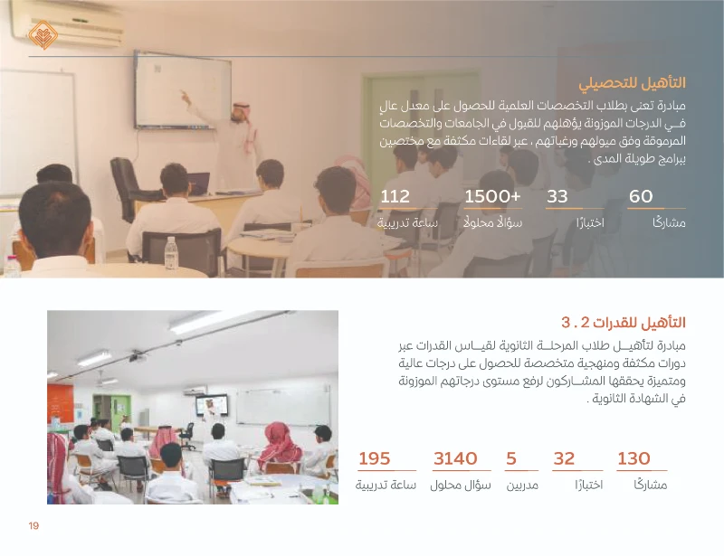 8 .برامج التأهيل لاختبارات القدرات والتحصيلي لدعم الطلاب في مسيرتهم الجامعية