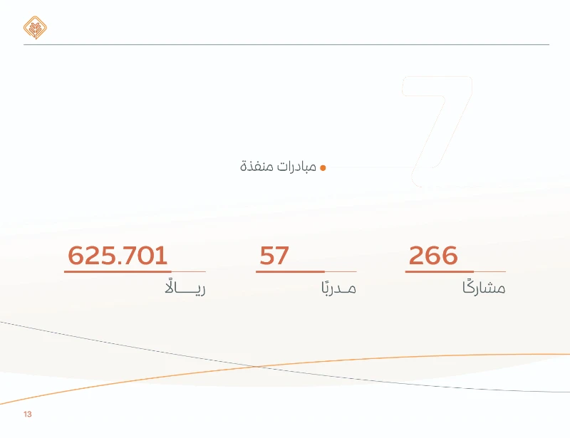 نفذت الجمعية 13 مبادرة تنموية بمشاركة 266 مشاركاً وتكلفة تجاوزت 625 ألف ريال
